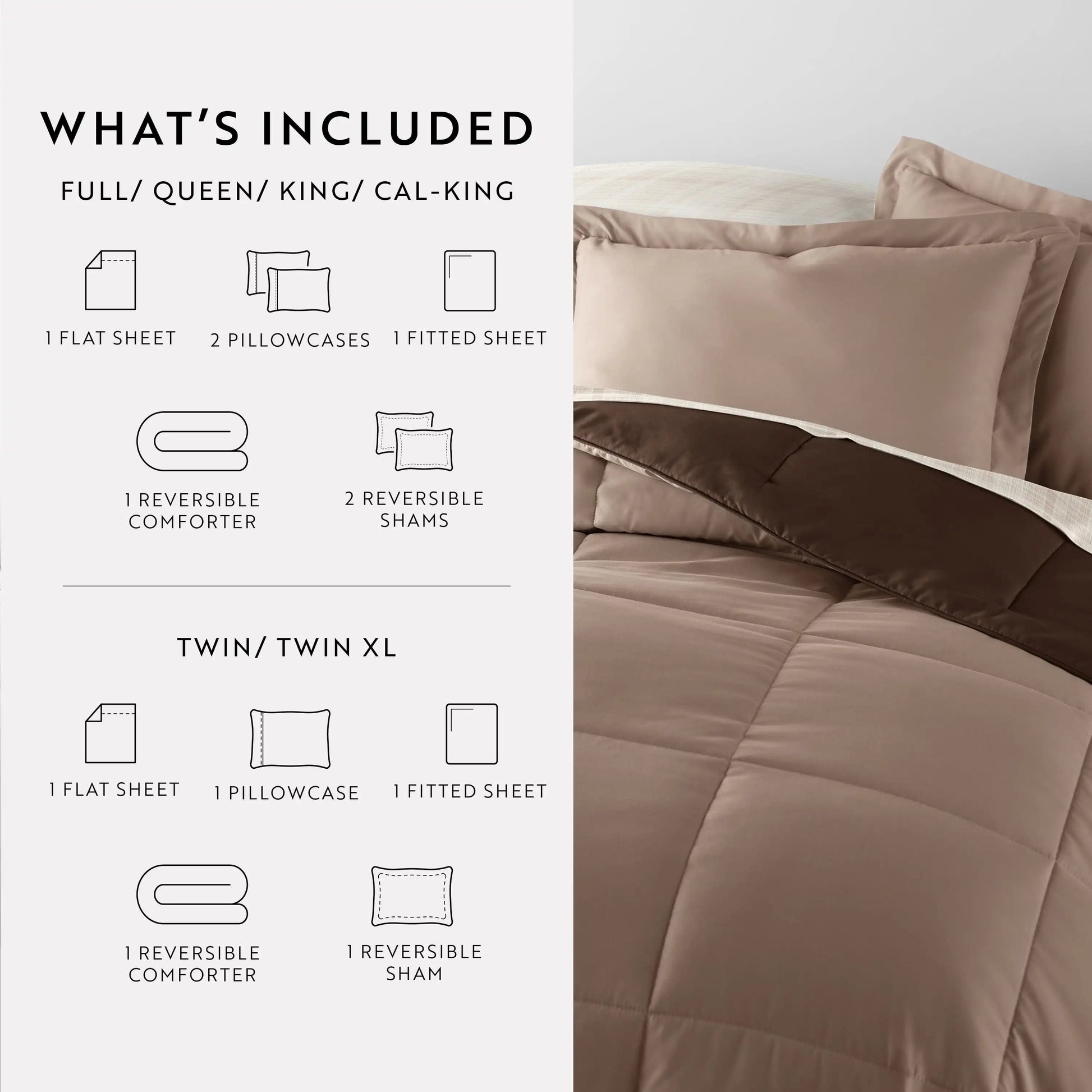 Transform your sleep space with a versatile bedding bundle that offers two chic color options in a reversible comforter and coordinating sheets, designed to adapt to any mood, season, or decor.