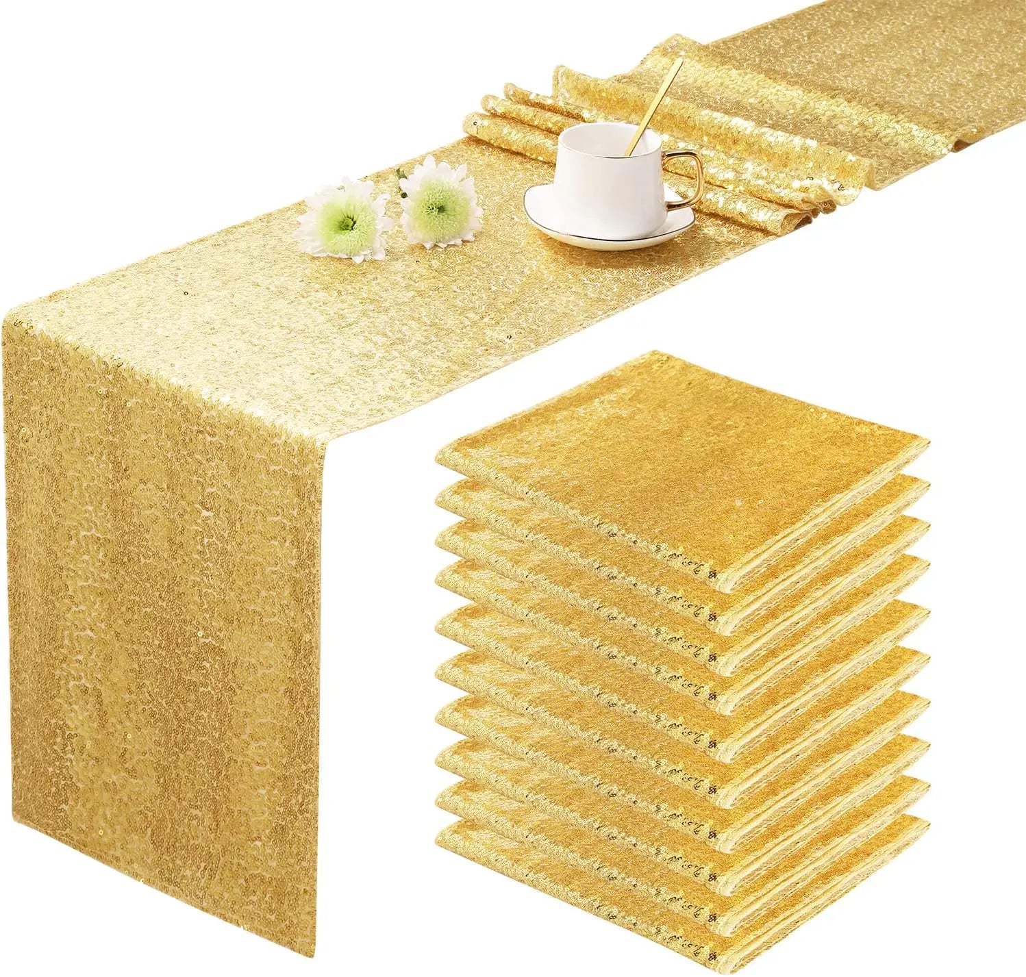 Elevate your table with a radiant gold sequin runner that catches the light from every angle, perfect for weddings, parties, holiday gatherings, and special celebrations.