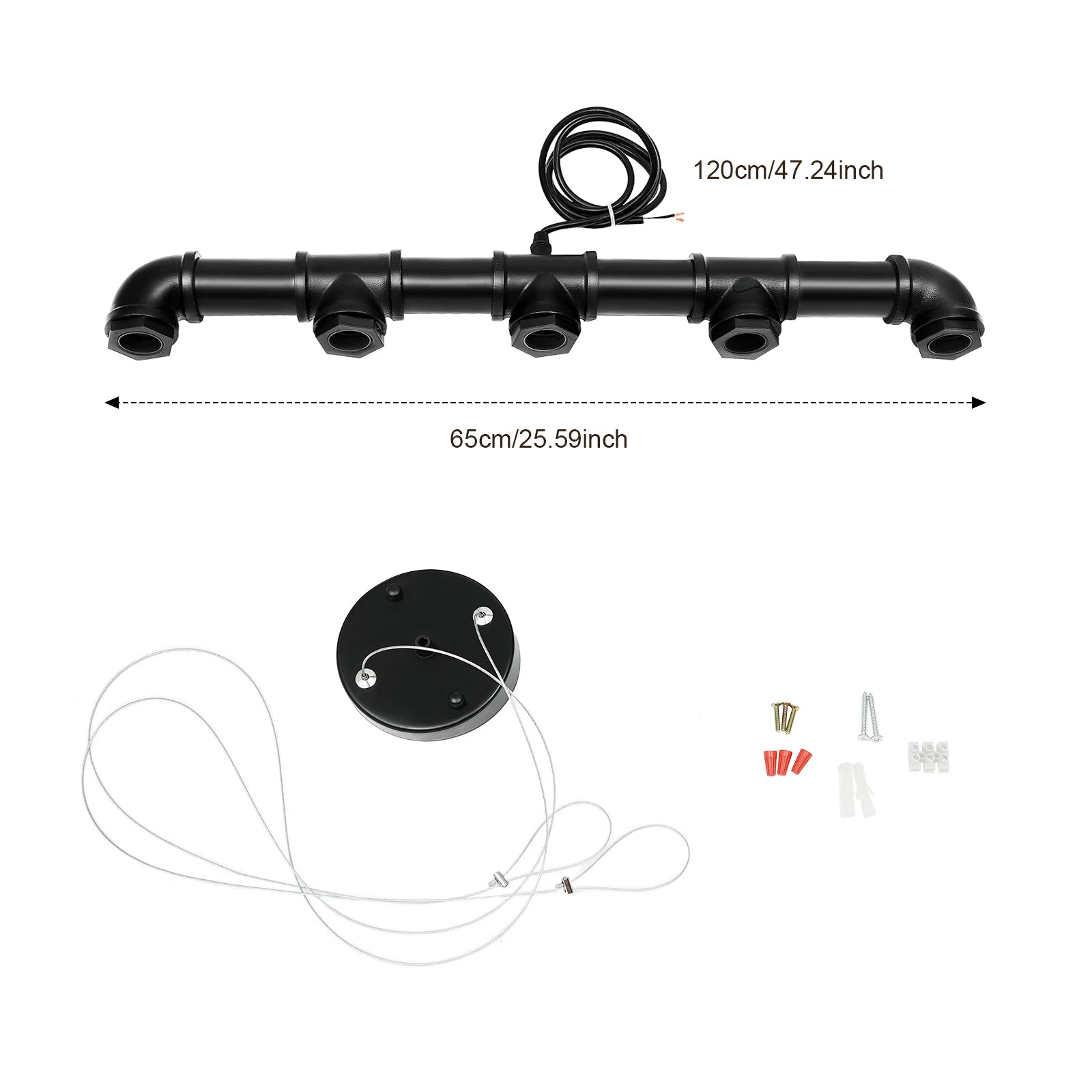 - Adjustable height and length: 65 cm fixture length with a 1.2 m hanging wire; height adjustable up to 100 cm (39.37 in) to suit different ceilings.