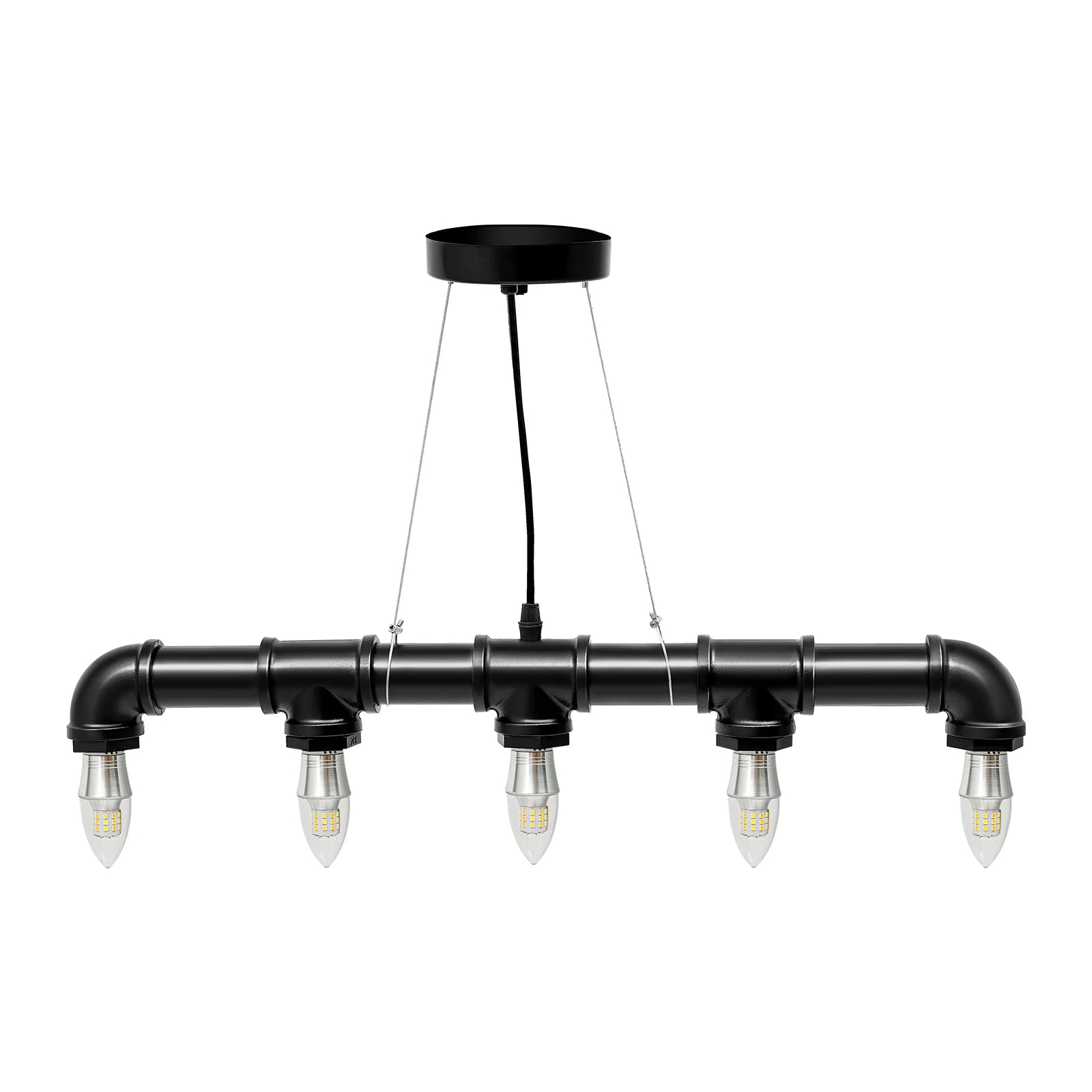 - Bold style, wide reach: Water-pipe design in black offers steampunk/vintage charm; ideal for kitchens or dining areas, lighting about 107–161 ft² (10–15 m²) with easy cleaning.